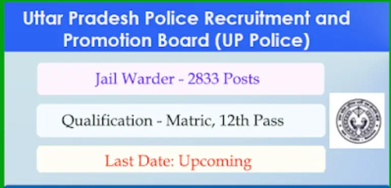 UP Police Jail Warder Notification is expected to be released by the end of April 2025. On March 27, 2025, the Uttar Pradesh Police Recruitment and Promotion Board (UPPRPB) announced the upcoming recruitment for 2,833 posts of Jail Warder in